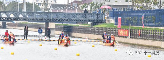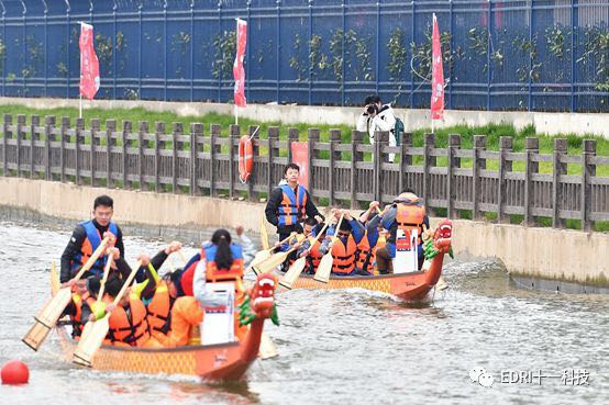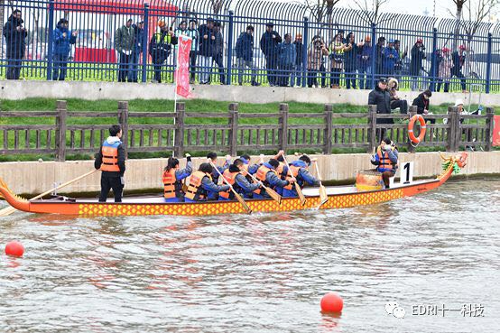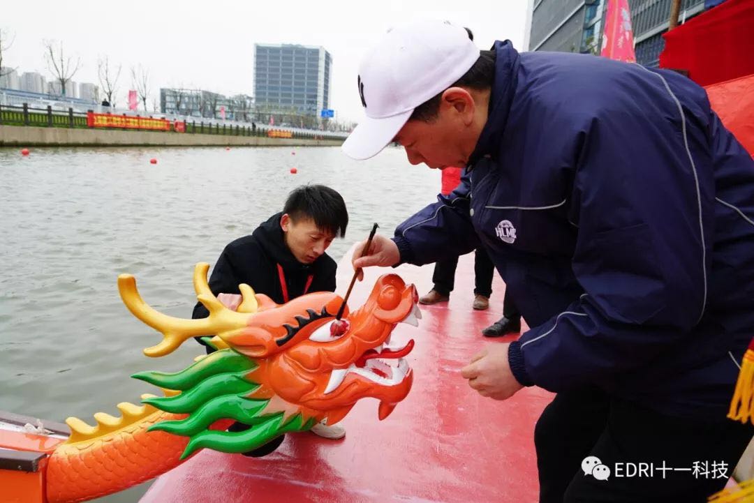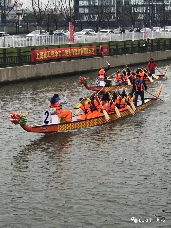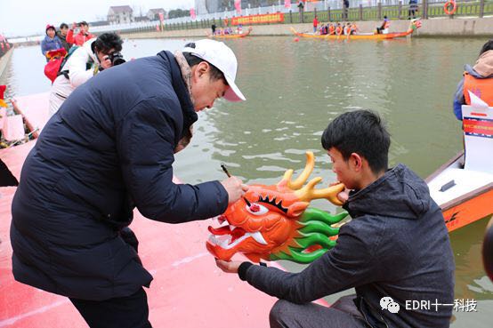 同時龍舟賽預賽也如火如荼的進行。上海華力、十一科技、上海建工等共 8 只隊伍參加了本次龍舟賽。十一科技龍舟隊順利進入決賽。隨后,決賽前的龍舟點睛儀式正式舉行。張素心、趙振元同志分別親自為華力隊、十一科技龍舟隊的戰船點睛。大家激動不已,斗志昂揚。